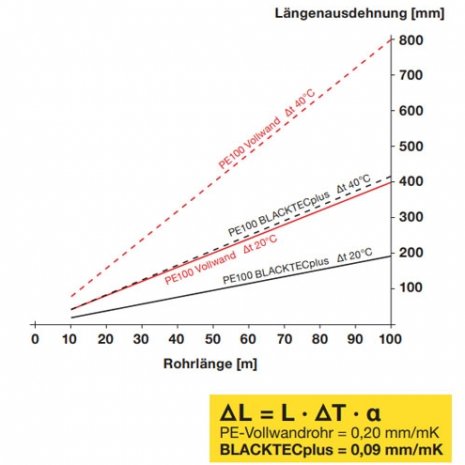 BLACKTECplusBLACKTECplus (Hersteller Firma Bänninger, Reiskirchen) ist das innovative Ergebnis unserer langjährigen Forschung und verringert, die Ausdehnung von PE100 Rohren massiv. Eine geringere Ausdehnung bedeutet für Sie: - Einsparung von Ausdehnungsbögen, Kompen satoren und Festpunkten - Schnelle Montage und somit Kosten ersparnisse in der Bauphase - mehr Sicherheit ![]() PRODUKTEIGENSCHAFTEN- Bis zu 55 % weniger Längenausdehnungim Vergleich zu PE100 Vollwandrohren - Geringes Gewicht im Vergleich zu Stahlleitungen - Verbindungstechnik: Stumpfschweißverbindun gen sowie E-Muffen nach DVS - Schlagzäh auch bei sehr niedrigen Tempera turen 40°C bis +60°C für PE100 - UV-beständig, geeignet für Außenverlegung - sehr gute chemische Widerstandsfähigkeit - Druckbereich bis 16 bar - Getestet durch IMA-Dresden - Abmessungen und Toleranzen entsprechend DIN 8074/8075, DIN EN 12201-2 sowie ISO 4427-2 |
